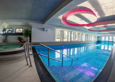 - kryty basen z jacuzzi: basen o wymiarach 18 x 6 m