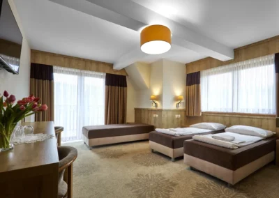 Nowoczesny i komfortowy obiekt położony w malowniczej okolicy u podnóża Tatr w Poroninie k. Zakopanego. To idealne miejsce na aktywny i pełen atrakcji wypoczynek w górskim klimacie. Zakwaterowanie w komfortowych pokojach o podwyższonym standardzie 3-, 4-, 5-osobowych z łazienką i TV, możliwe pokoje 6-os. Do dyspozycji uczestników: