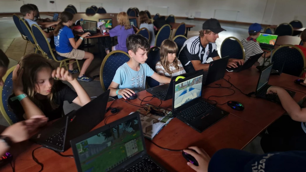 Programowanie, eksperymenty, technologia i zabawa – wszystko w jednym miejscu! Dzieci podczas 14 godzin szkolenia uczą się programowania oraz dobrze bawią w świecie Minecraft. Pozostały czas to zabawa w gronie rówieśników, kolegów i koleżanek, wakacyjne przygody, zabawy na świeżym powietrzu, zajęcia integracyjne, konkursy z nagrodami, dyskoteki i wiele więcej.