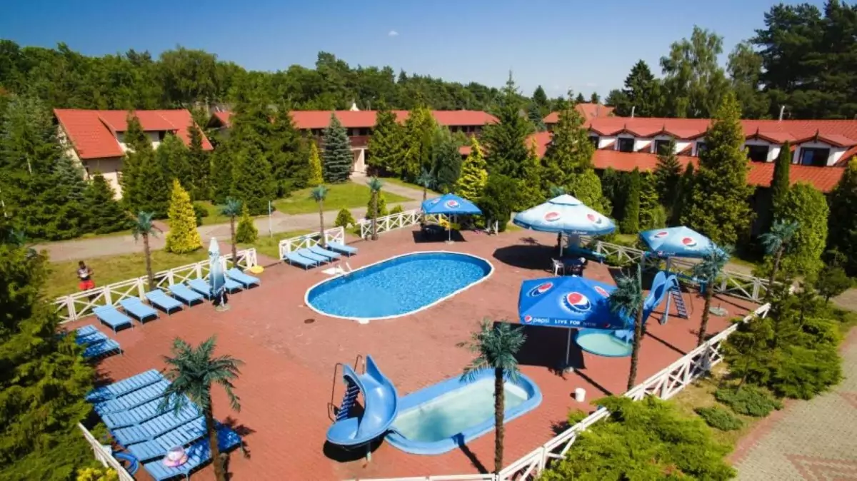 Ośrodek położony jest na skraju sosnowego lasu. Murowane budynki znajdują się na dużym, zadbanym, ogrodzonym i oświetlonym terenie o powierzchni 2 ha. Pokoje 4-osobowe z łazienkami. Na terenie ośrodka: sale świetlicowe, boiska sportowe, stoły do tenisa stołowego, altany ogrodowe i miejsce na ognisko. Dodatkową atrakcją jest kompleks odkrytych basenów rekreacyjnych.